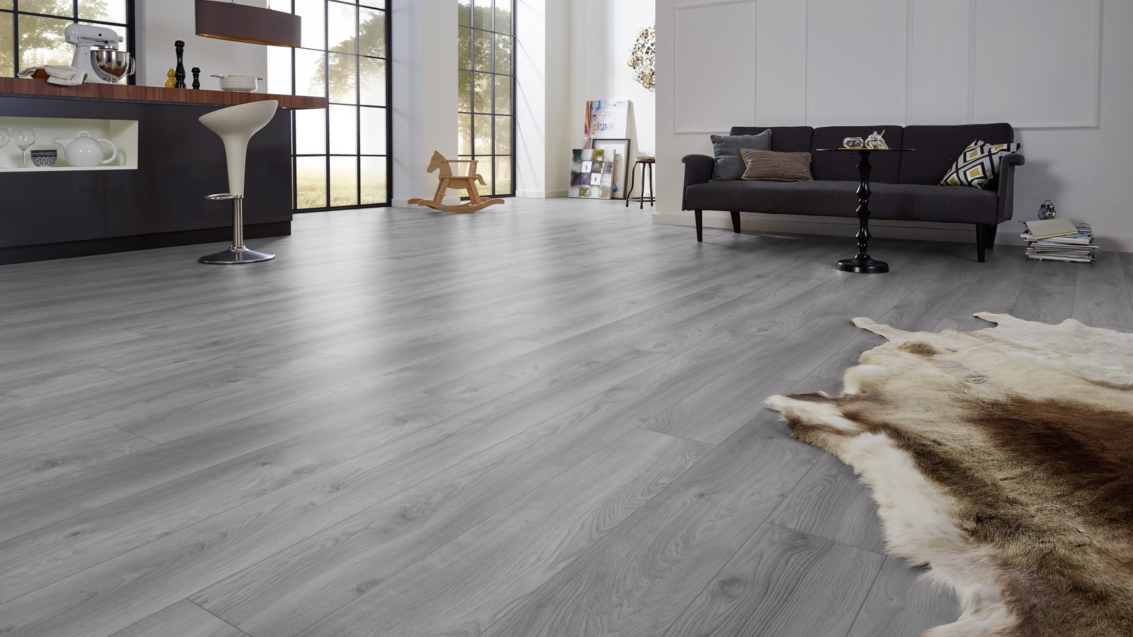 Немецкое производство и наличие сертификатов гарантируют стабильное качество. Текстура дуба не выходит из моды и легко сочетается со скандинавским и минималистичным стилями. Такой пол гармонично смотрится в кухне-гостиной, коридоре и детской, где важны практичность и спокойный фон.