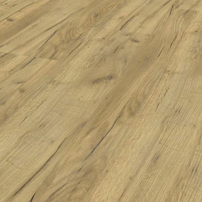 Ламинат от Kronospan из коллекции Castello 832, декорированный под дубовое дерево, предназначен для оформления пола в любом интерьере. Его отличает глубокая рельефная поверхность, которая добавляет изысканности и подчеркивает уютную естественность материала. Разнообразие рисунков, включая одно- и двухполосный варианты, позволяет ламинату легко вписываться в разные стили оформления – от современных до классических. Покрытие рекомендовано для помещений умеренной проходимости, включая жилые и общественные зоны. Упаковка ламината содержит 2,22 м2, что упрощает расчет нужного количества материала для покупки.